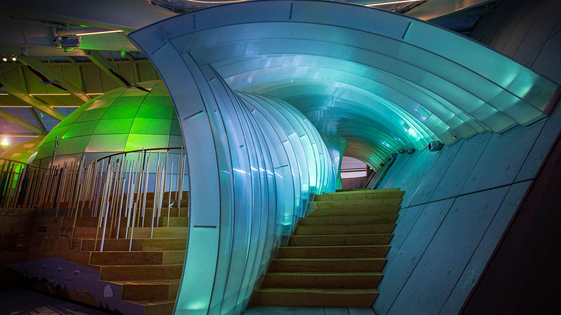 At the Naturkraft experience center, Blocks controls a lighting system from Grandma, audio and various other system functions based on sensor data, an advanced dome projection using Dataton WATCHOUT and systems power management and scheduling.
