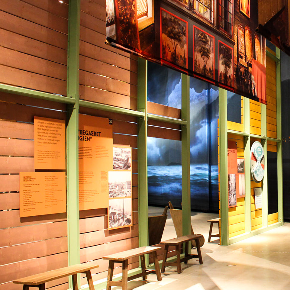 This unique exhibition and outdoor landscape lets visitors experience the history of Nordland. Centered around the authentic jekt vessel, along with numerous other objects, images, scenography and interactive elements, the exhibition facilitates learning and recreates the feel and tone of Nordland. PIXILAB Blocks, along with 20 Intel NUCs running PIXILAB software, makes up the media system. This includes bilingual, interactive touch-stations, lighting control, synchronized multi-channel soundscapes/effects and lighting. Two vertically mounted projectors, playing 2400x1920 pixels of video from a single player, provide a scenographic backdrop. While being a fully automated system, mobile devices used by on-site staff allows for manual overrides of audio levels and other presentation aspects.