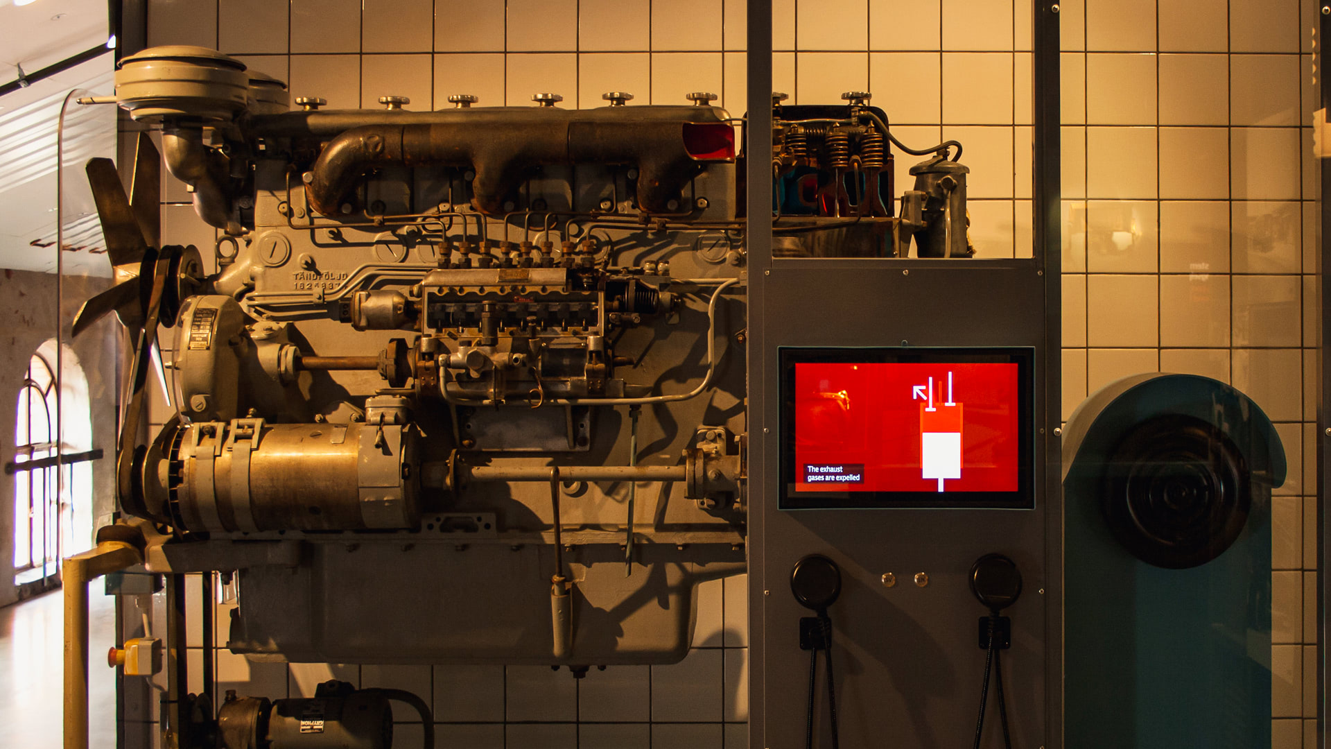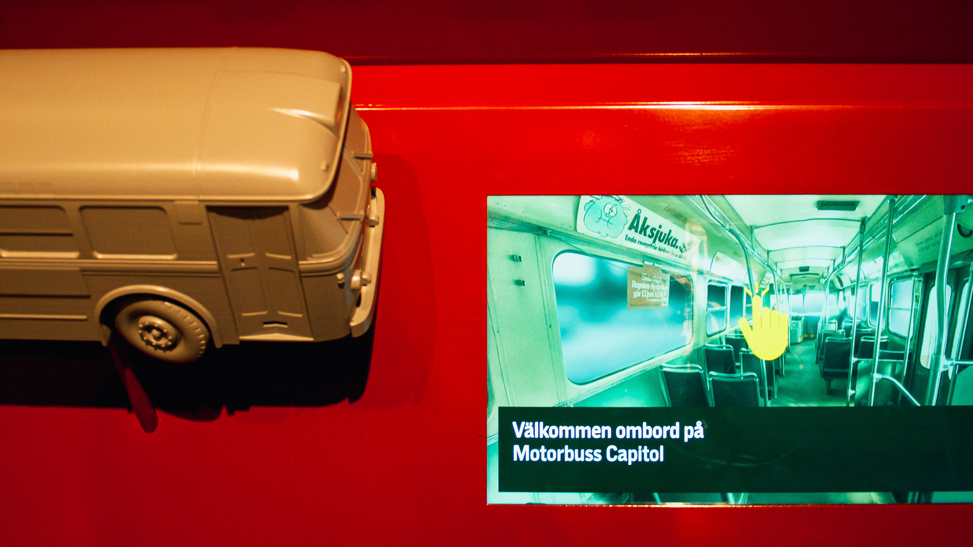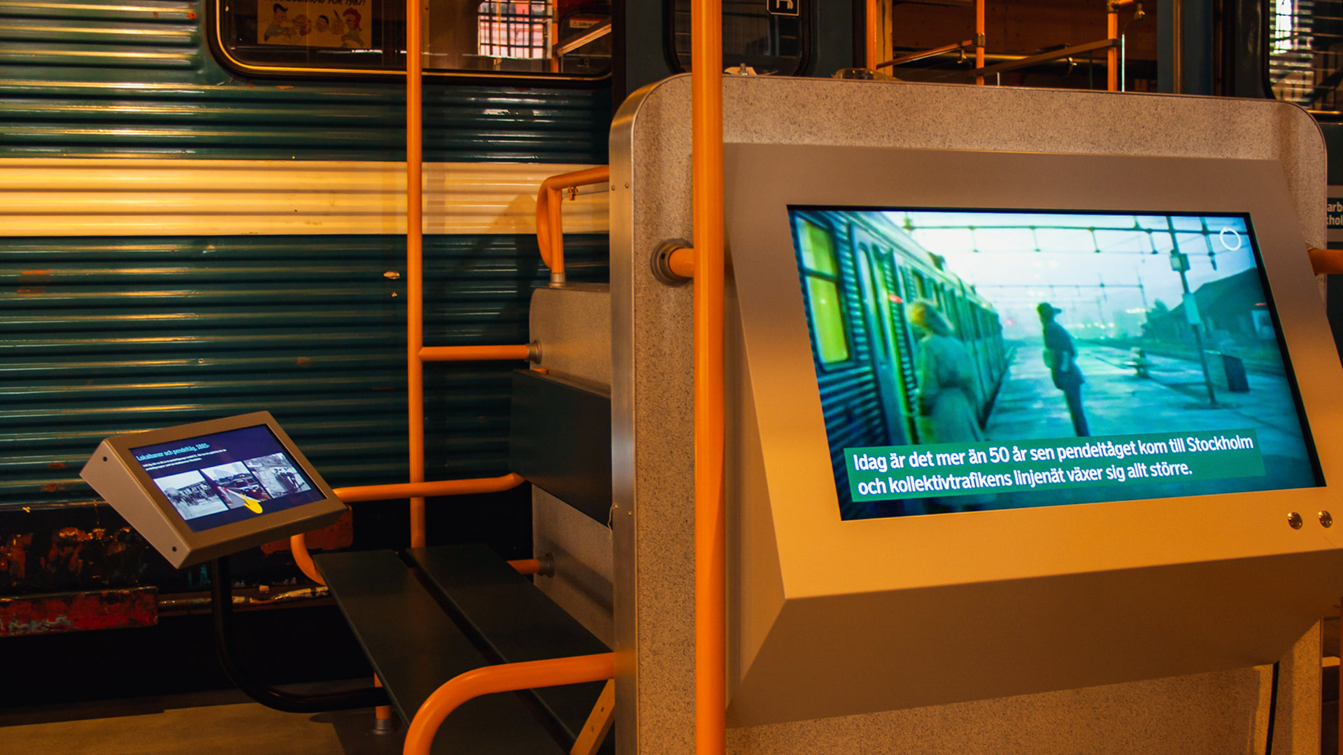 • Interactive train cockpits, where visitors can drive the train using the original controls, here affecting the engine sound and the view out the window as the train speeds up and slows down.