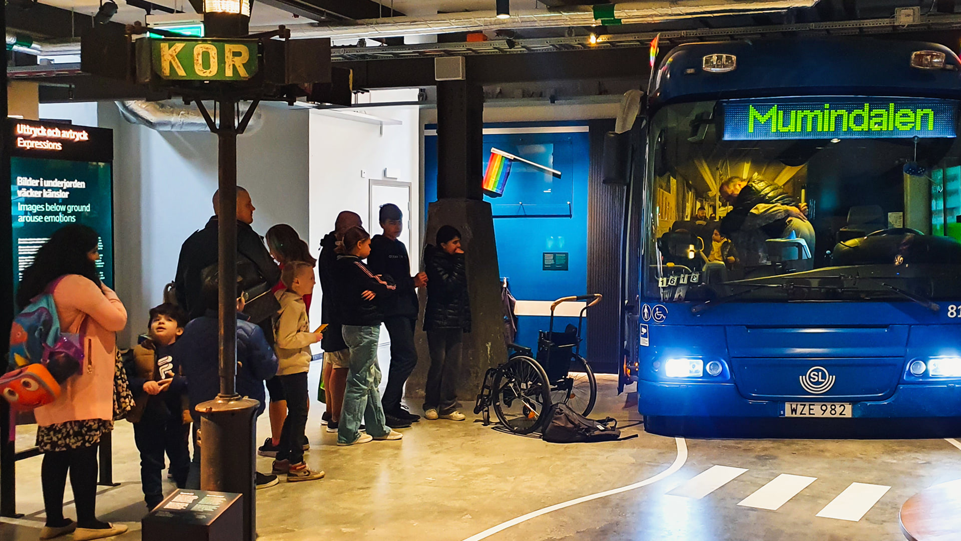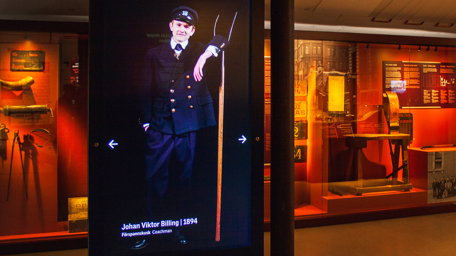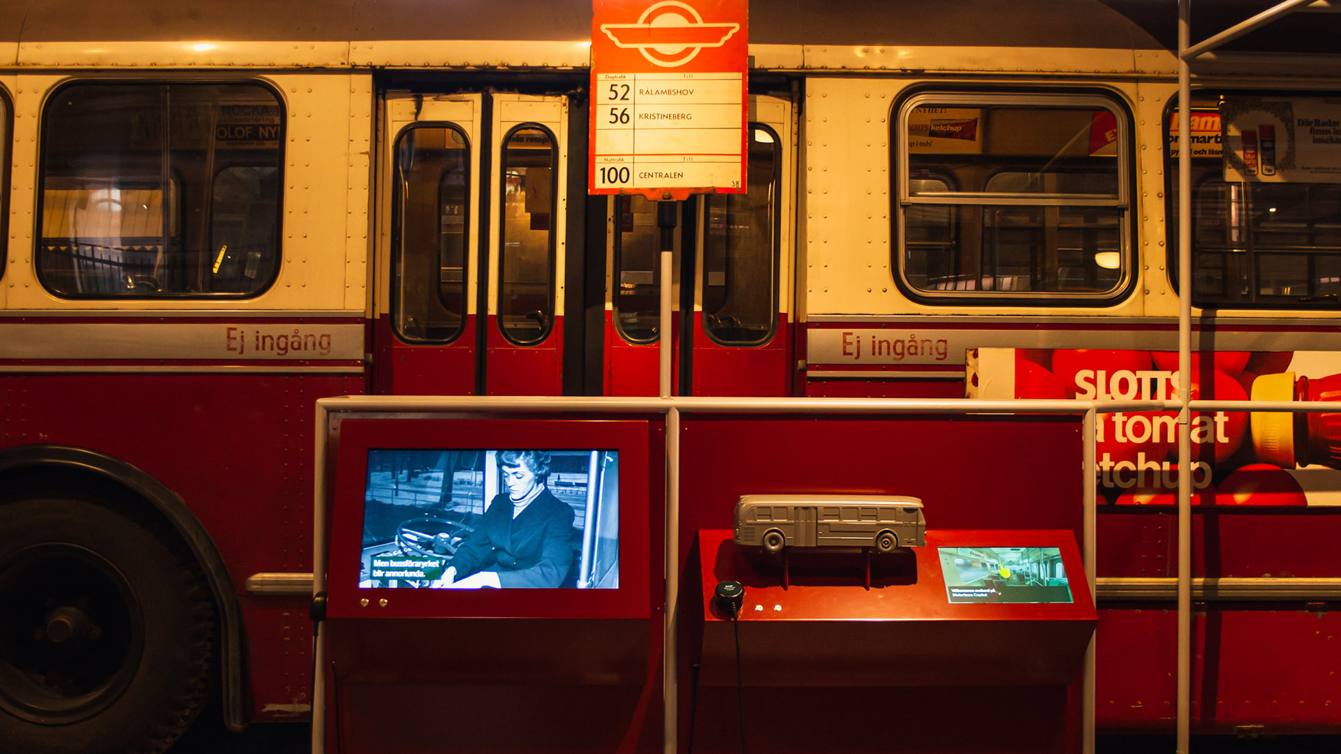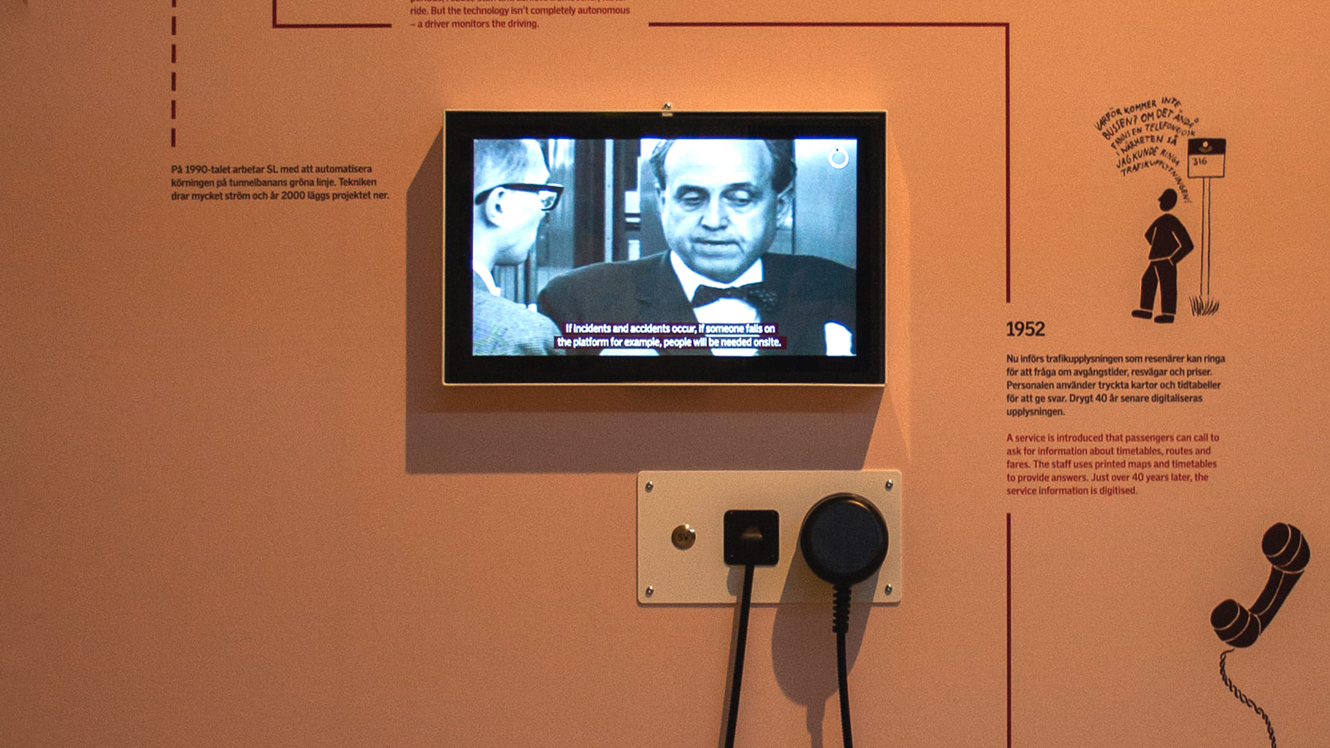 • Interactive train cockpits, where visitors can drive the train using the original controls, here affecting the engine sound and the view out the window as the train speeds up and slows down.