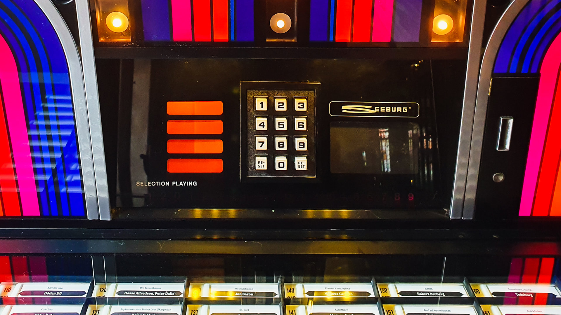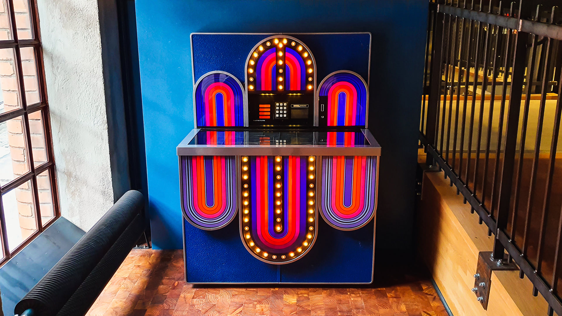 • A jukebox playing numerous travel-related songs.